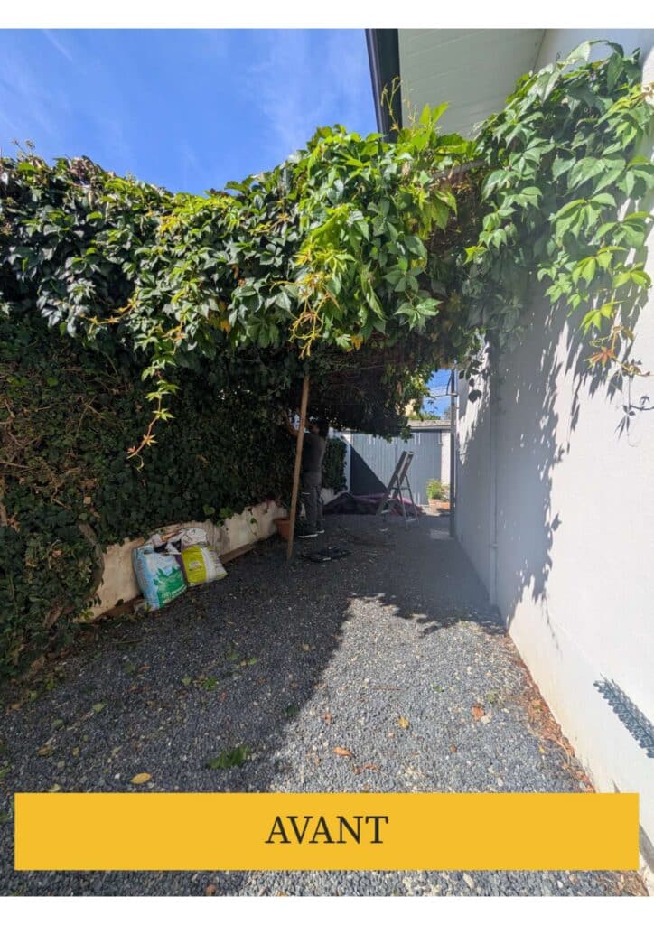 Cette dernière souhaitait se débarrasser de cette structure et de sa végétation envahissante, pour y implanter un carport digne de ce nom.